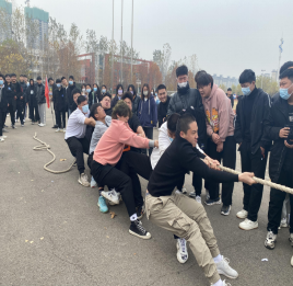 比赛进行中,只见上场人员一个个铆足了劲握紧绳子,往后使劲的拔,两边观看比赛的人员也都不受控制的呐喊着“加油!加油!加油!”赛场上洋溢着青春的样子,心情都无比激动。尽管天气有些寒冷,但同学们都个个心潮澎湃,把寒冷抛到了脑后。