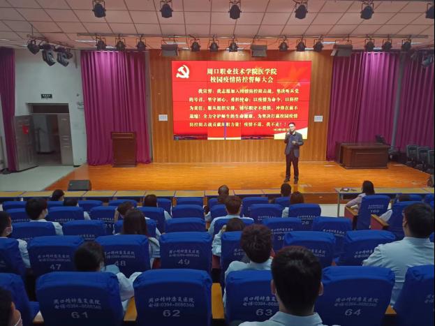 疫情就是命令,防控就是责任。为营造一个安全的校园环境,确保师生平安,5月7日,周口职业技术学院医学院举行疫情防控誓师大会。会议由医学院党总支书记王隼主持,医学院全体在校值班领导、老师和学生入党积极分子参加会议。