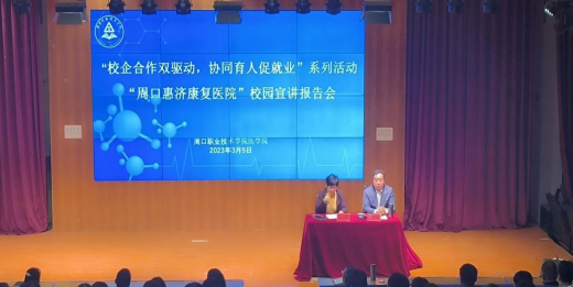 3月5日晚,周口惠济康复医院董事长王希振、副院长邓云华到我校医学院,为康复治疗技术专业学生进行专业教育和职业发展讲座。副校长李明臣,医学院全体班子成员及2021级康复治疗技术专业学生参加了讲座。讲座由医学院院长王金玲主持。