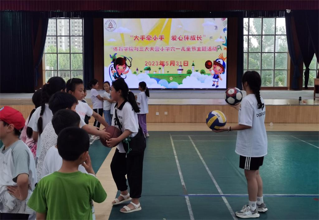 学校体育学院体育教育专业师生带领三大夫营同学们开展健身操、排球、跳绳等体育游戏和竞技活动,并手把手辅导同学们使用健身器材。通过此次活动,既使孩子们感受到体育运动的魅力,激发了自身潜能,又培养了勇敢、乐观、团结协作的良好品质。孩子们在体育活动中体验合作与交流的快乐,度过了一个难忘的“六一”国际儿童节。