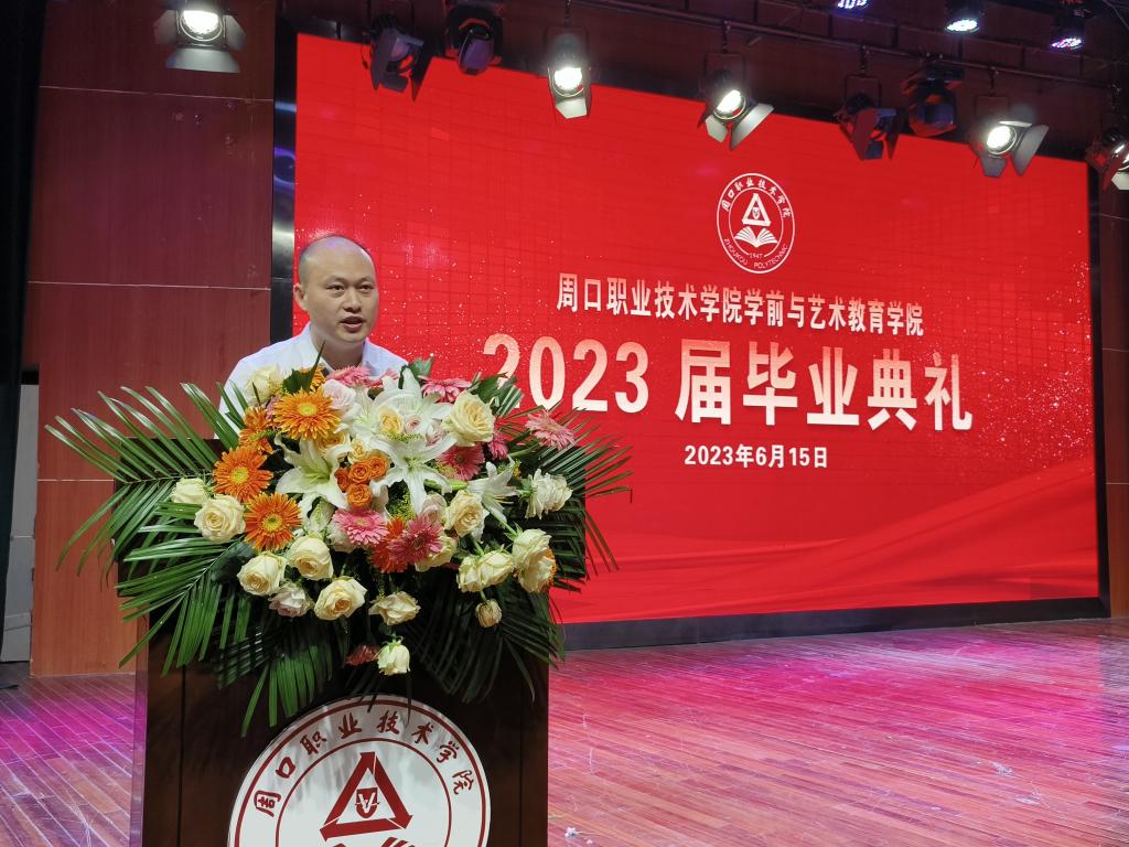 6月15日,周口职业技术学院学前与艺术教育学院在学校励德厅隆重举办2023届毕业典礼。学院领导班子,教研室主任、20级辅导员、优秀教师代表及学生代表参加典礼。典礼由学院党总支书记王春生主持。