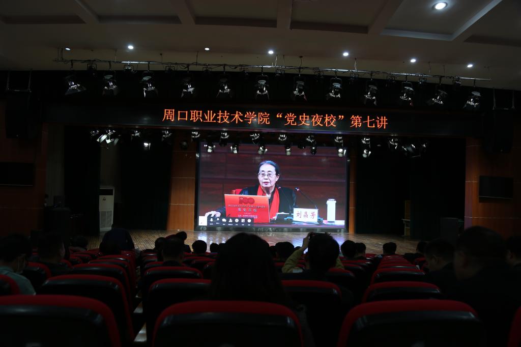4月14日晚,我校在开元校区砺德厅组织收听收看周口市庆祝中国共产党成立100周年“党史夜校”第七期专题讲座。全体校领导,学校副科级以上干部参加专题讲座。