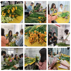接下来,农牧工程学院的石娜老师和何莉老师为大家介绍了各种花草,并示范讲解花束的制作方法。然后,两位老师在农牧工程学院园艺专业朱凯旋、李冰之、邵书浩、舒政照、闵成立、任亚娜同学的协助下为大家分发花草。