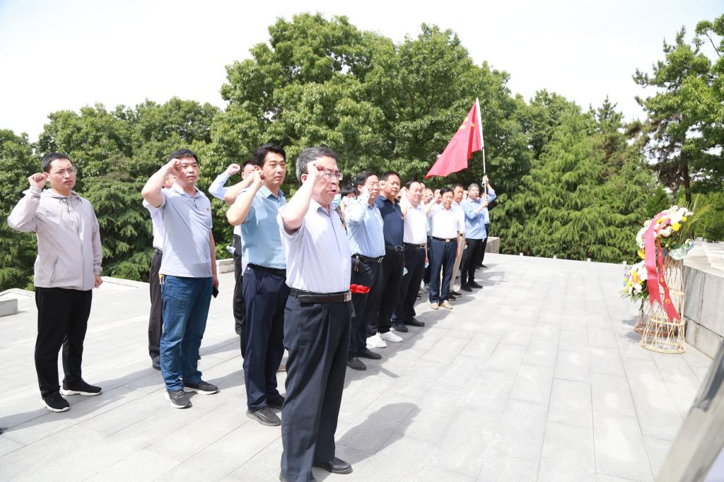 青山巍巍,绿水荡漾。上午10点,大家来到竹沟革命烈士陵园,向长眠在这里的革命先烈表达深沉的哀思和无尽的怀念。陵园内,古木森森,庄严肃穆。大家从陵园广场缓步前行,走向革命纪念碑,向长眠于此的革命先烈敬献花篮、默哀、鞠躬。纪念碑前,面向党旗,举起右拳,庄严宣誓,重温入党誓词,以坚定有力的宣誓声表达不忘初心、牢记使命、忠诚担当和为共产主义事业奋斗终身的决心。仪式结束后,大家列队瞻仰烈士陵墓。