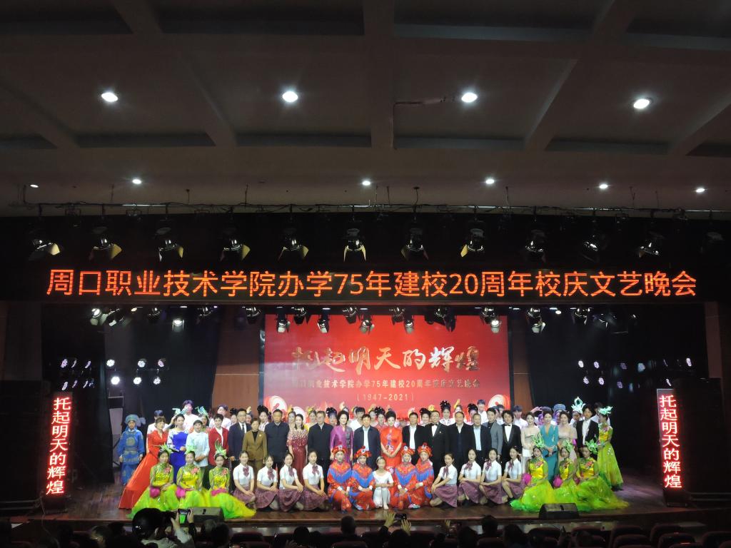 晚会以“廿载周职 扬帆远航”“为主题,在“梦想启航”、“栉风沐雨”、“砥砺前行”、“春华秋实””四个篇章中,展示了周口职业技术学院七十五年风雨沧桑办学路,二十年执着追求建校史历程和新时代周职人坚守信念、干事创业的发展成果,以及对学校未来发展充满的自信与豪迈。